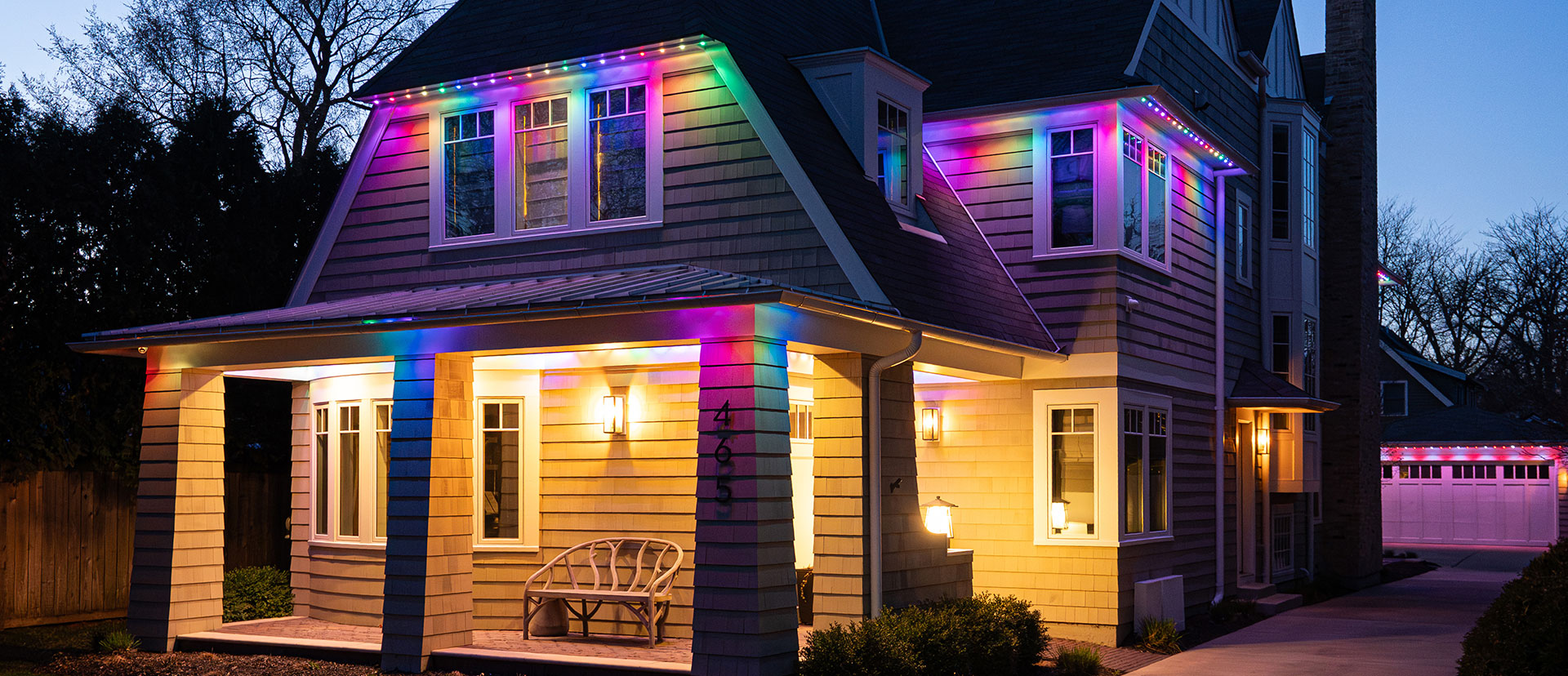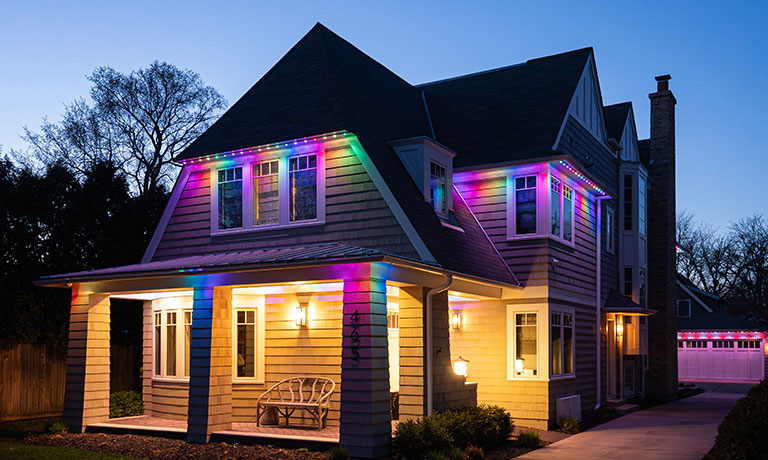 The system is custom-installed to blend seamlessly with your roofline. Using a mobile app or remote, you can choose colors, patterns, and schedules. Whether it’s Christmas, Halloween, the 4th of July, or everyday accent lighting, you can change your look instantly.